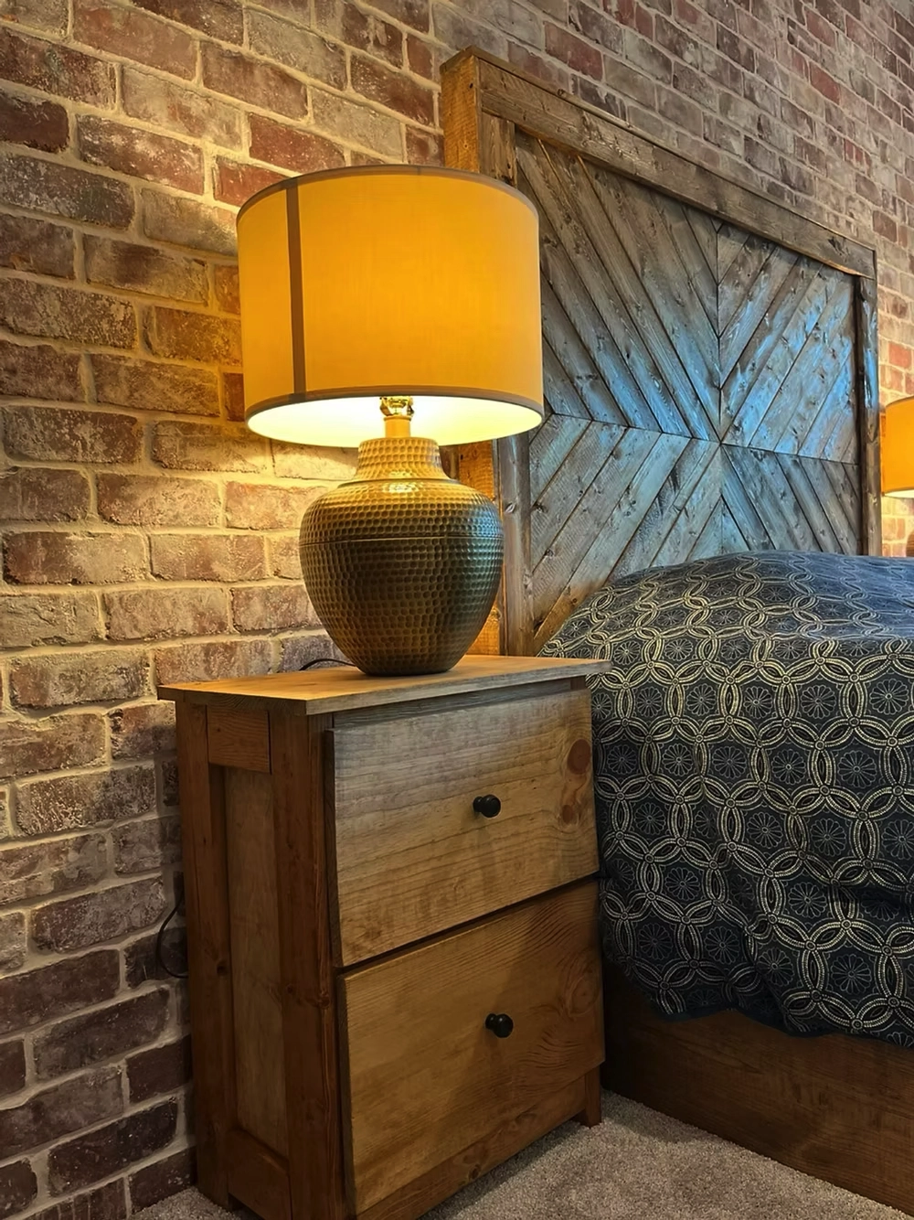 This classic farmhouse nightstand is the perfect addition to any bedroom. Crafted from pine and stained to each customers preference, it features two drawers with drawer hardware for easy sliding and use. This nightstand is a great statement piece for any bedroom in your home, vacation home, or rental property. The Twin Butte Nightstand will provide storage and style to your space.